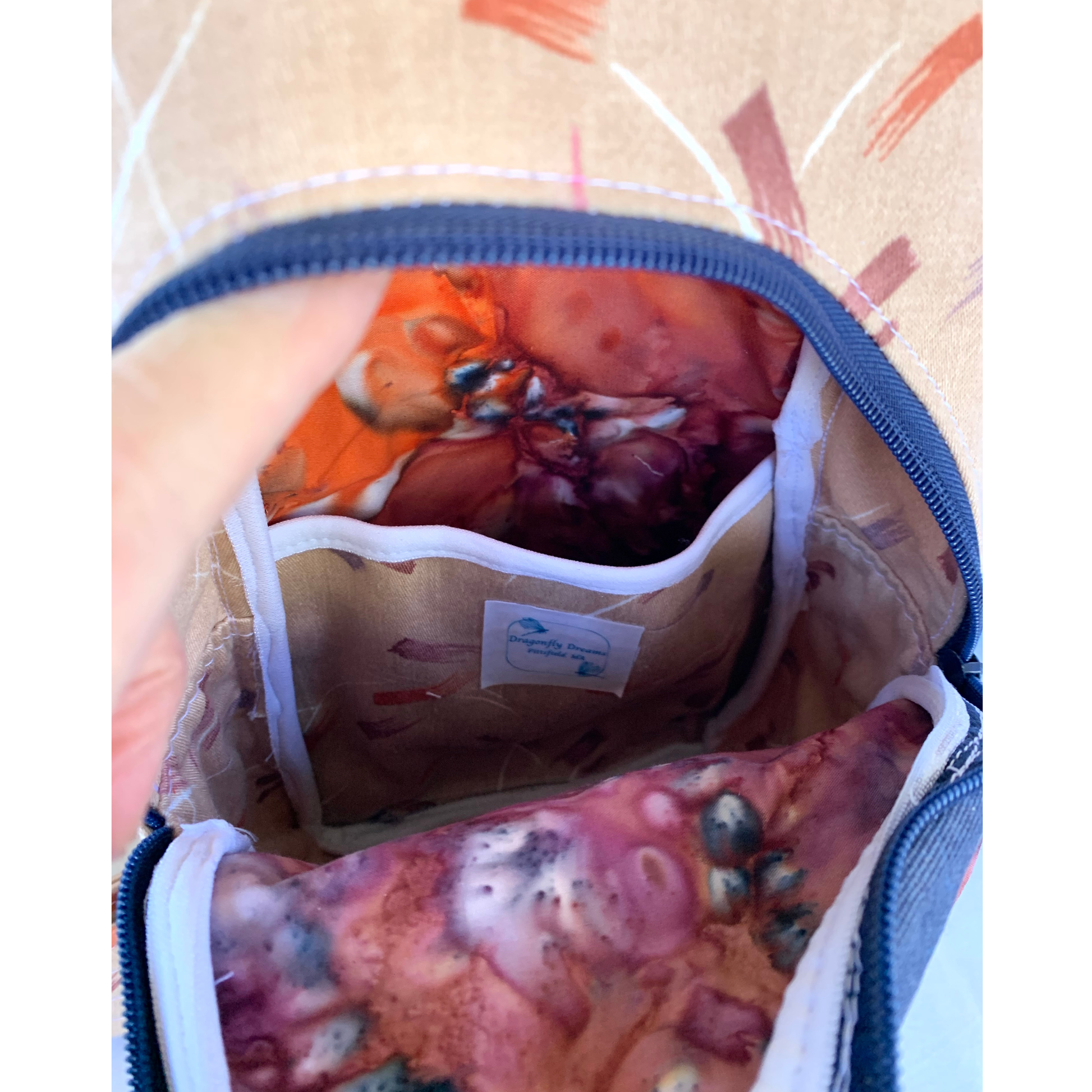 Use this sling bag to cart around your essentials with an attitude! Designed similar to a backpack, but much smaller and without the back straps, this sling has D-rings on either side so that you can change the strap from one side to the other depending upon which shoulder you want it coming from.