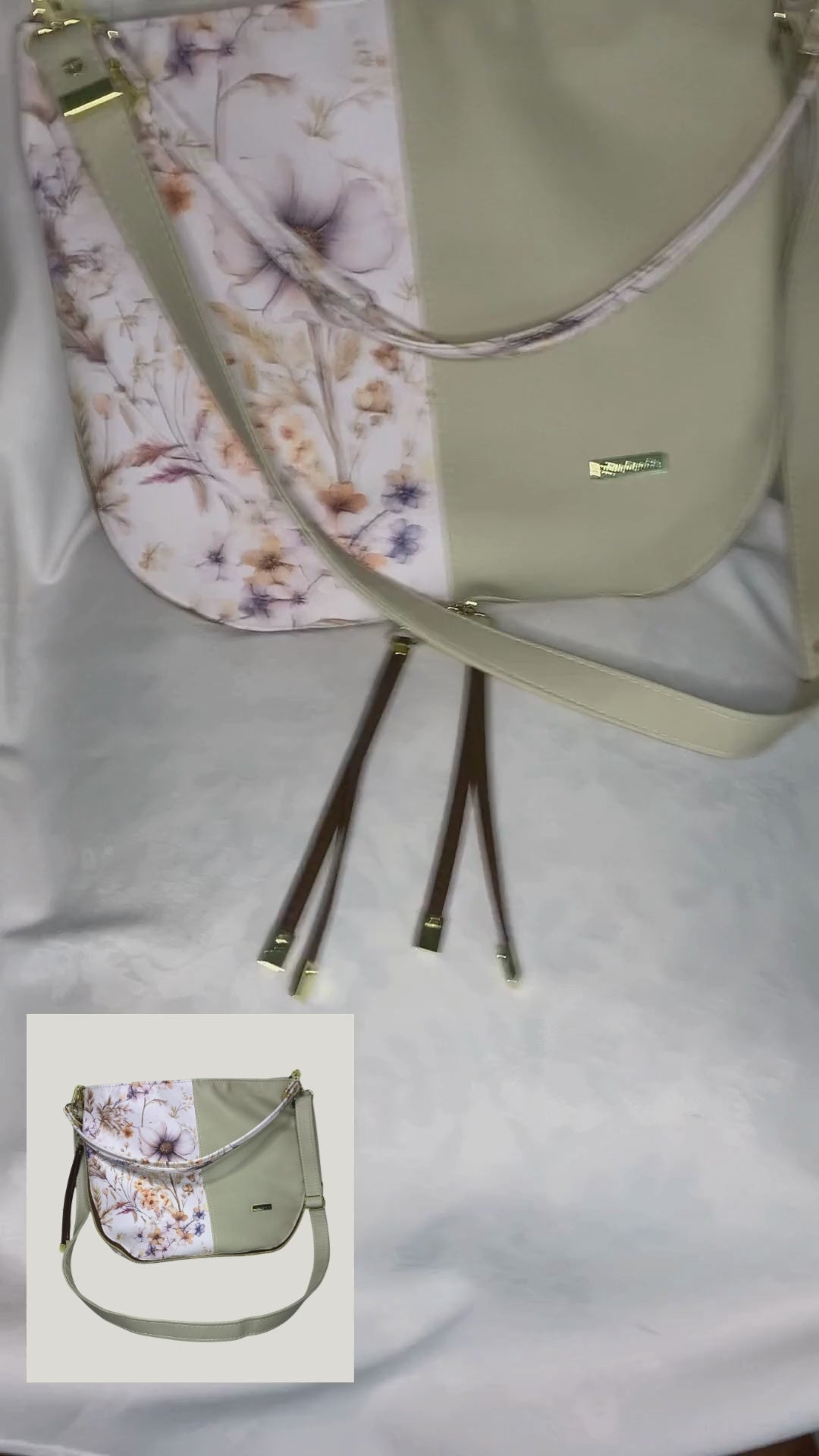 Additional detachable and adjustable crossbody/shoulder strap in the beige vinyl