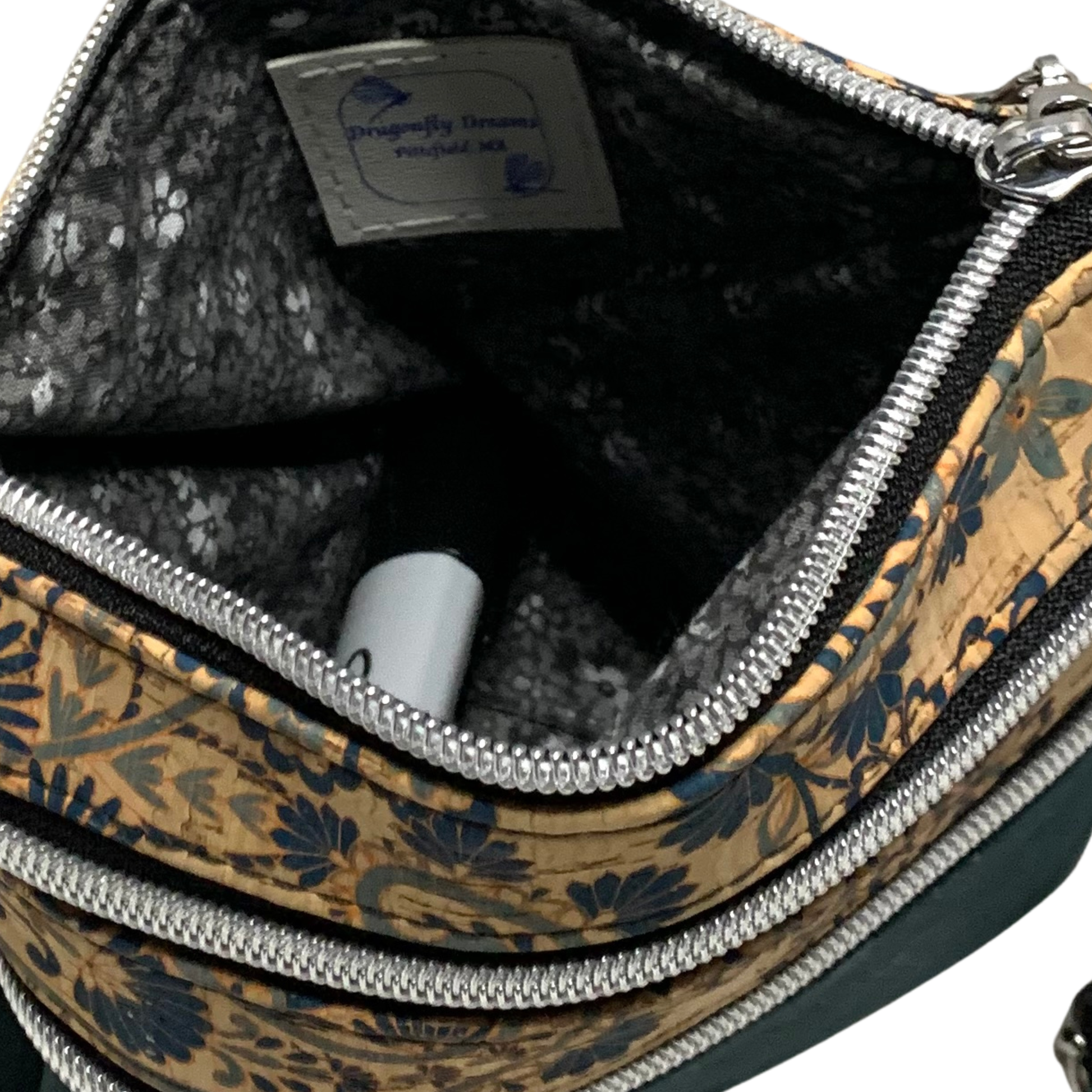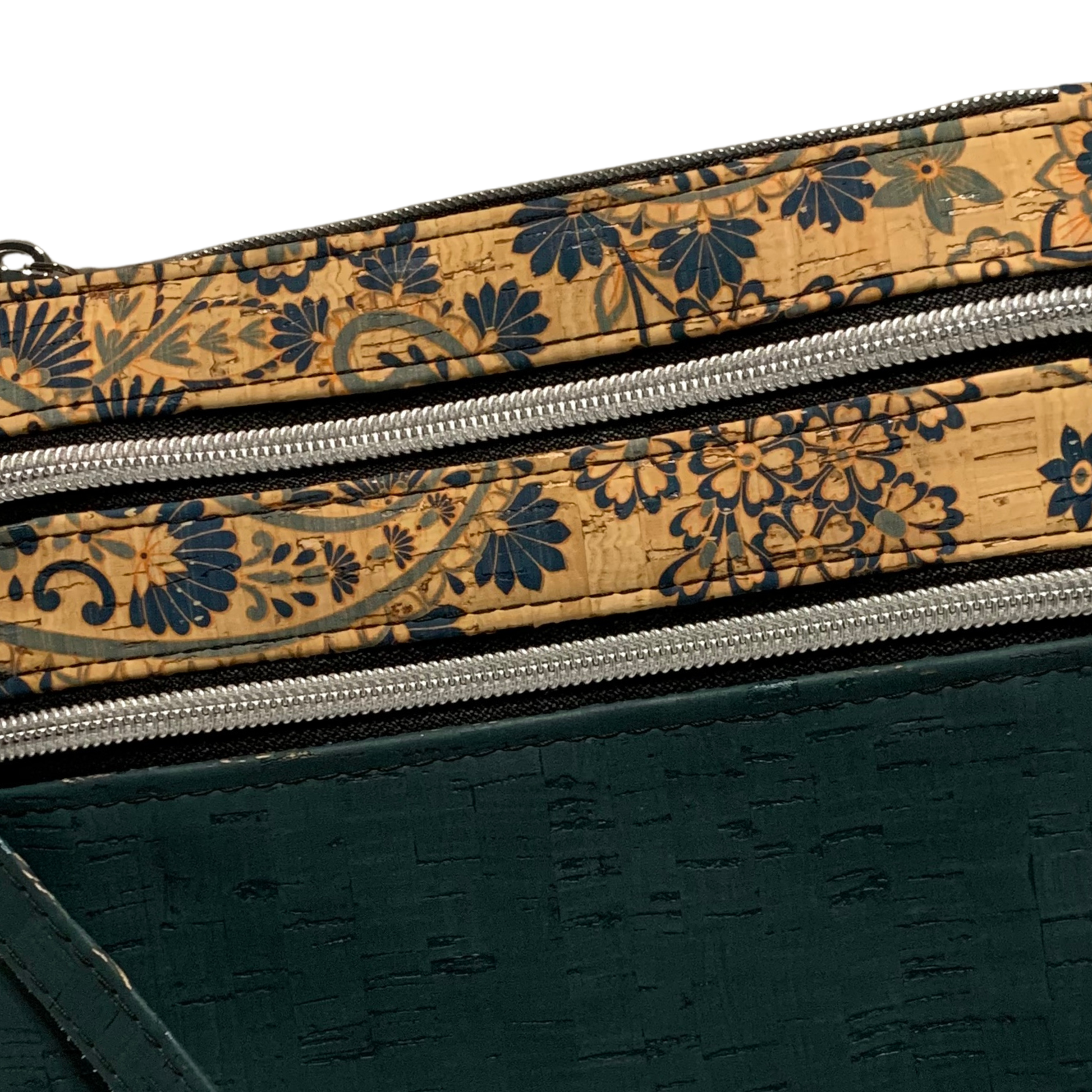 Crafted from premium cork fabric in a sophisticated jasper tone, this crossbody bag features a sweet paisley print that seems to emit happiness paired with a calming, solid, rustic jasper green. The structured silhouette is perfect for everyday essentials, while the secure zippered closures ensure your belongings stay protected. Adjustable crossbody strap allows for personalized carry comfort, making it an ideal companion for work, travel, or weekend outings. Vegan leather alternative construction aligns with conscious style choices without compromising on durability or refined aesthetics.